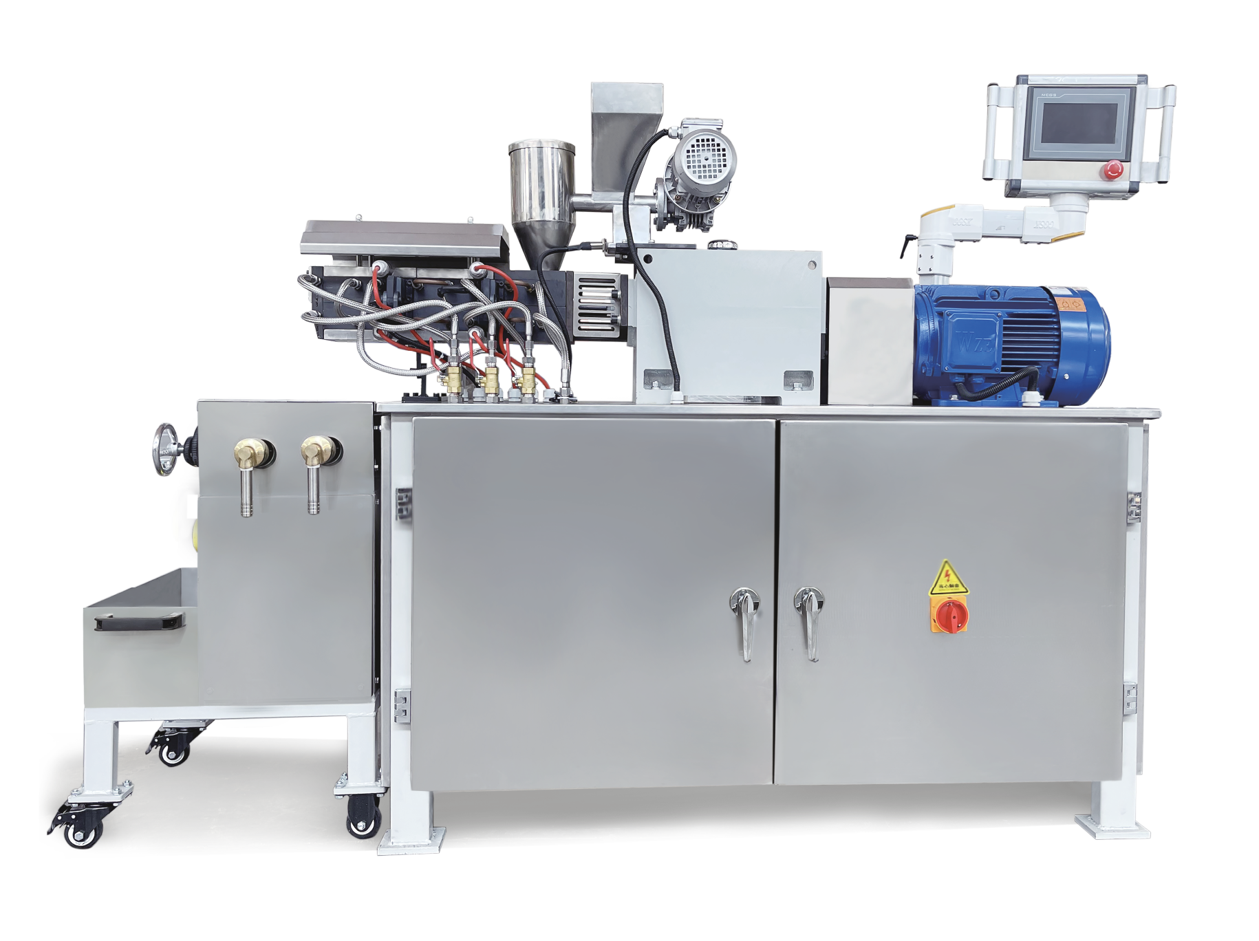 實驗室雙螺桿擠出機SLJ系列實驗室雙螺桿擠出機設計新穎,結(jié)構(gòu)緊湊合理,集擠出、壓片于一體,其混煉效果可與大機相媲美,是研制粉末涂料生產(chǎn)工藝、品種開發(fā)、校色的理想設備。原料在高速旋轉(zhuǎn)精密嚙合塊的作用下,進行充分的分散和分布混合。實驗室雙螺桿擠出機是粉末涂料生產(chǎn)的關鍵設備。
